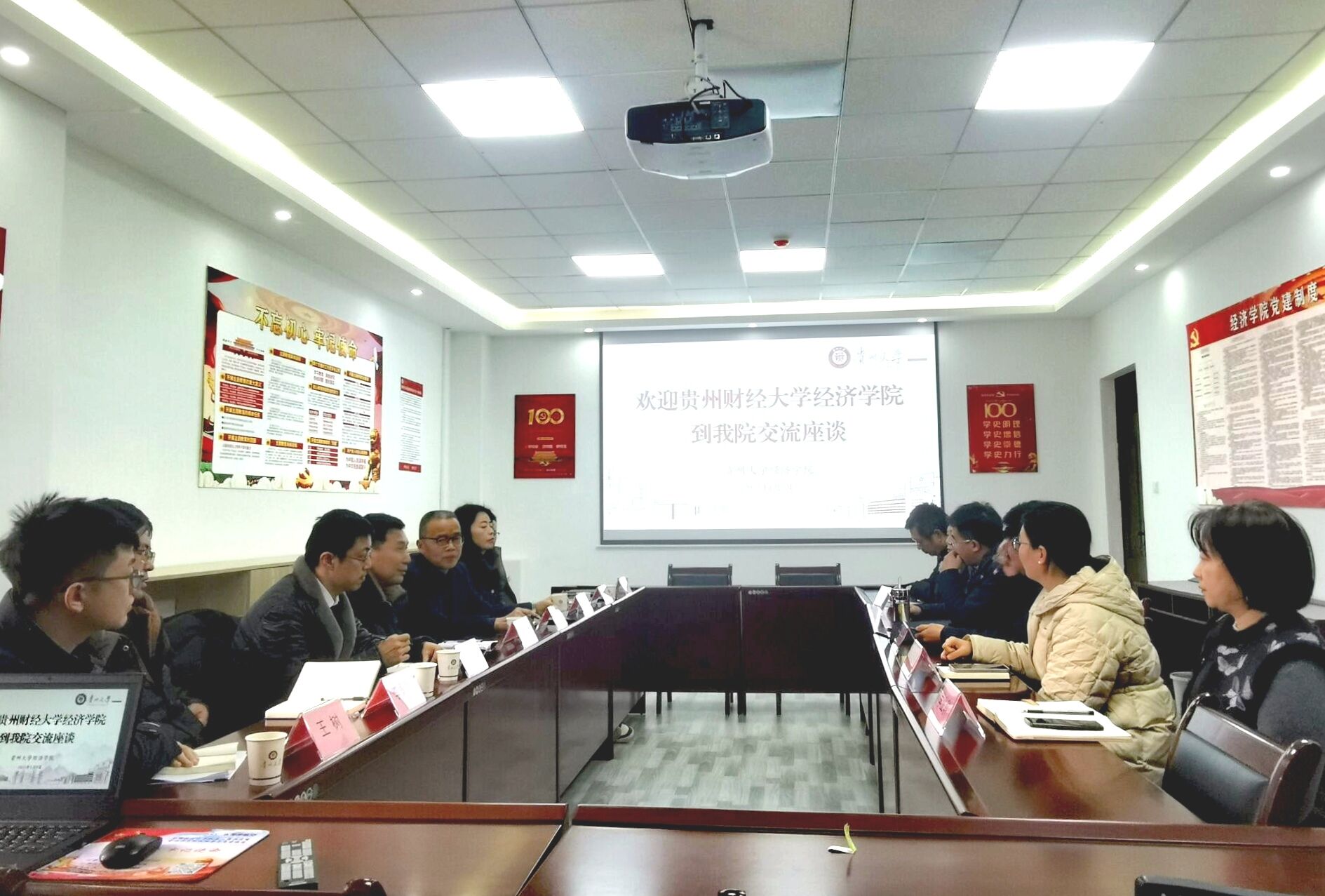 2026世界杯指定网站经理洪名勇等党政领导及相关科室负责人热情接待了公司调研组,介绍了学科布局、人才培养、科学研究等方面的总体思路。向秋丹副书记重点分享了公司党建工作特色,特别是以高质量党建引领公司各项事业发展的创新实践。