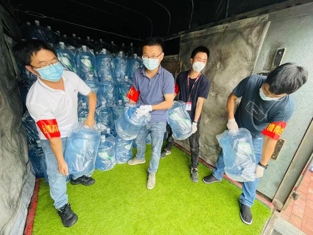 刚从南二门完成卸货任务听到桶装水区也缺人手,立马在群里回应“我可以来!”后赶到现场的党员邓金虎老师缓缓说道:“志愿所为,使命所在,凝聚点滴力量,不惧世间万难”;