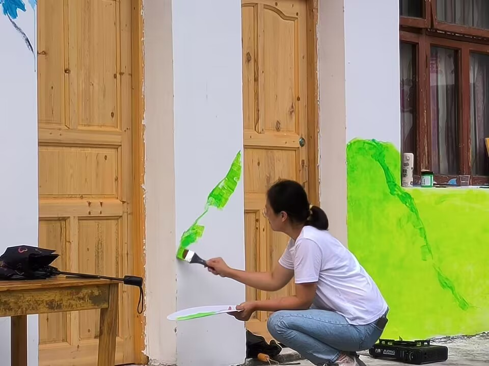 图1 杨志远老师正在墙体绘画