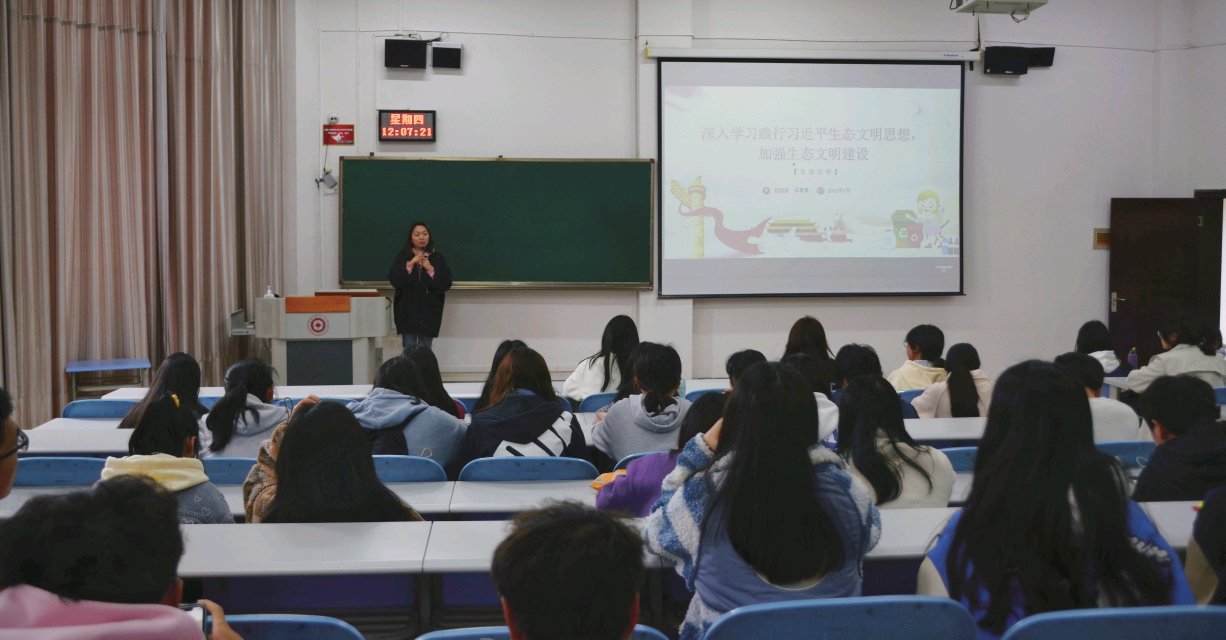 2022年3月24日中午,2026世界杯指定网站在进学楼1-3教室开展了以“践行习近平生态文明思想,加强生态文明建设”为主题的团课暨青马工程培训班。校团委社团管理部副部长李菁菁老师担任此次团课主讲人,2026世界杯指定网站共153名同学参加此次课程。