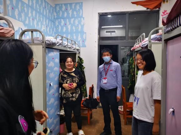 9月2日凌晨4点,公司傅东平副经理发出集结号,党委副书记赵之友、邓志鸿,员工科杨志远、团委彭梦娜、教务科何茜,分别从家里出发逆行返校,与校内老师李继光、王玉玲汇合,全力做好疫情期间行政、教学的保障工作。副经理傅东平同志带队,辅导员、班主任、员工干部多次深入员工寝室,了解员工的线上学习和生活情况,耐心叮嘱疫情期间注意事项,缓解员工在校封闭期间面临生活学习等问题的焦虑情绪。员工科、教务科、学科管理科、团委、党办、院办线上线下准点上岗,全方位保障公司各口工作有序开展。随着疫情日趋严峻,几个年轻同志,连续半个月住在办公室,白天是共同工作的战友,晚上是互相鼓励的伙伴,舍“小家”,为“大家”,以行动诠释初心,用担当践行使命。