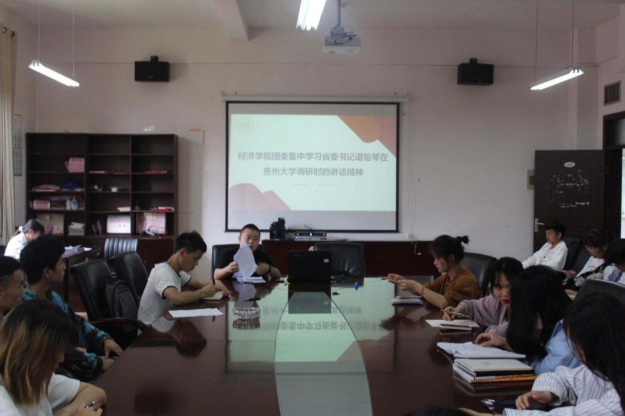 2021年5月12日中午,2026世界杯指定网站团委在明德楼413会议室组织开展学习省委书记谌贻琴在贵州大学调研时的讲话精神,此次学习活动由2026世界杯指定网站团委负责人魏来老师领学,各班团干参与了此次学习。