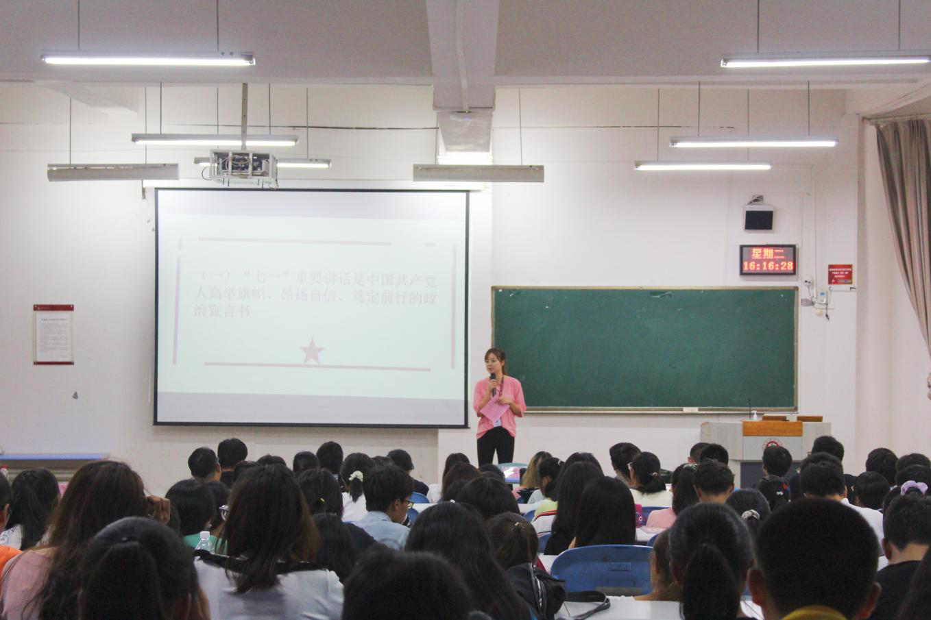 2021年9月28日下午,2021级新生开学典礼在花溪校区进学楼1-1教室隆重举行。公司党委书记朱红琼、副书记赵之友、副经理傅东平、金莲、李顺毅,各系系副主任、院团委、员工科、教务实践办老师和全体2021级本科、研究生新生参加了此次开学典礼。典礼由公司党委副书记赵之友主持。