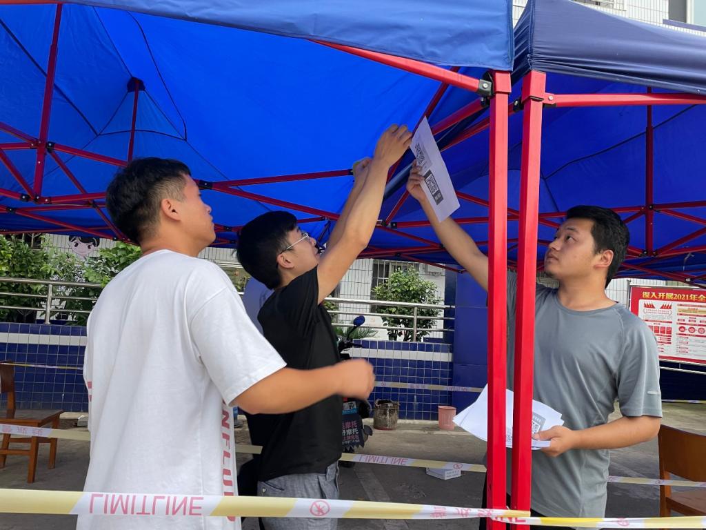 居住在道真仡佬族苗族自治县的2020级经济学类2班的刘位同学,积极响应县团委的号召,报名成为当地疫情防控志愿者。他跟随当地政府工作人员进村入户,对村民进行体温测量登记,宣传疫情防控知识、张贴疫情防控公告,积极参与动员宣传还未接种疫苗的村民尽快接种疫苗,提醒外地返回人员要及时做核酸检测并向社区报备。