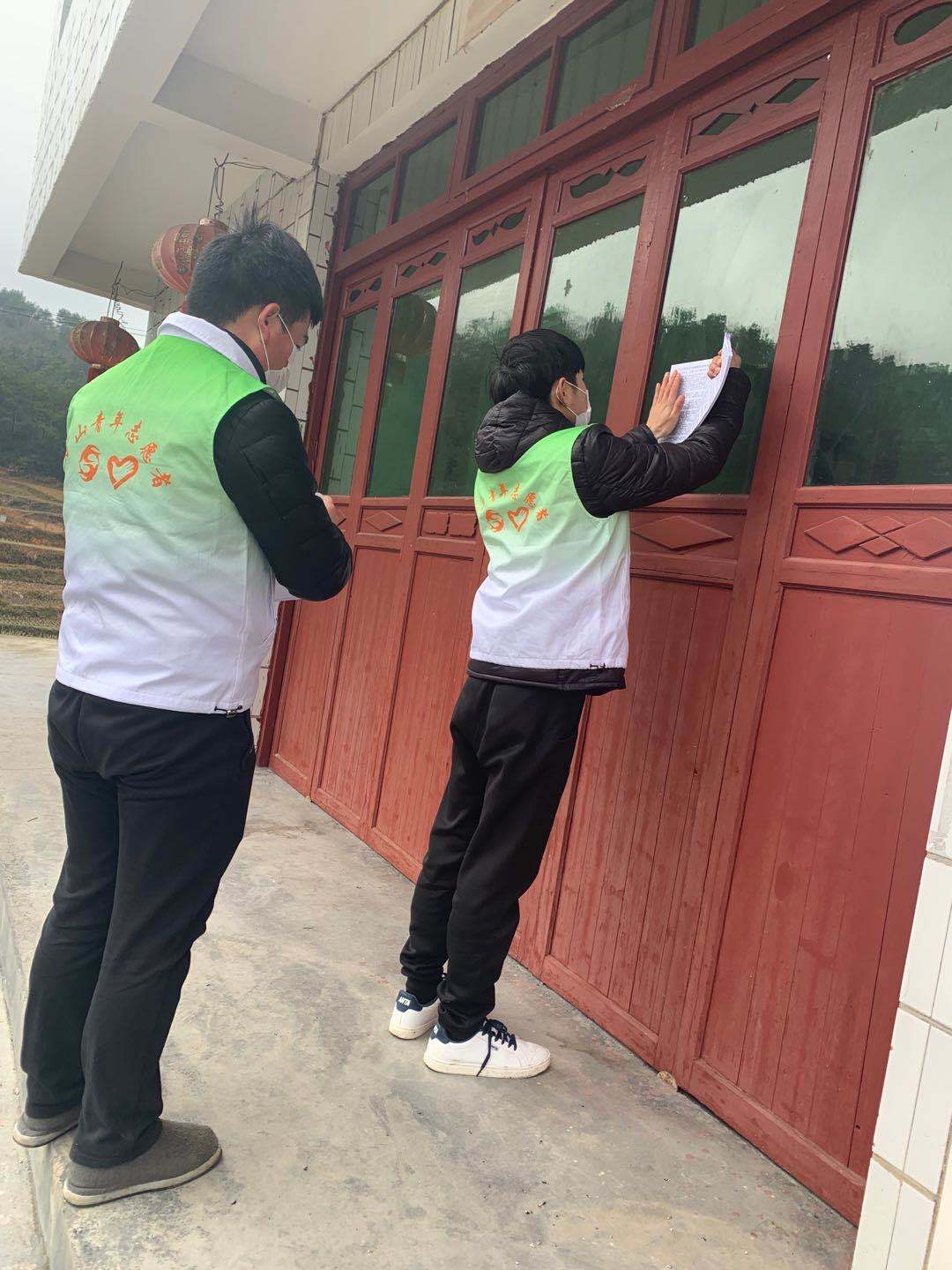 2018级经济学类的员工赵斌主动请缨成为铜仁市万山区茶店镇政府团委组织下的志愿者之一,在茶店镇尤鱼铺村进行疫情防控工作,宣传防疫知识、登记生活用品以便统一购买。