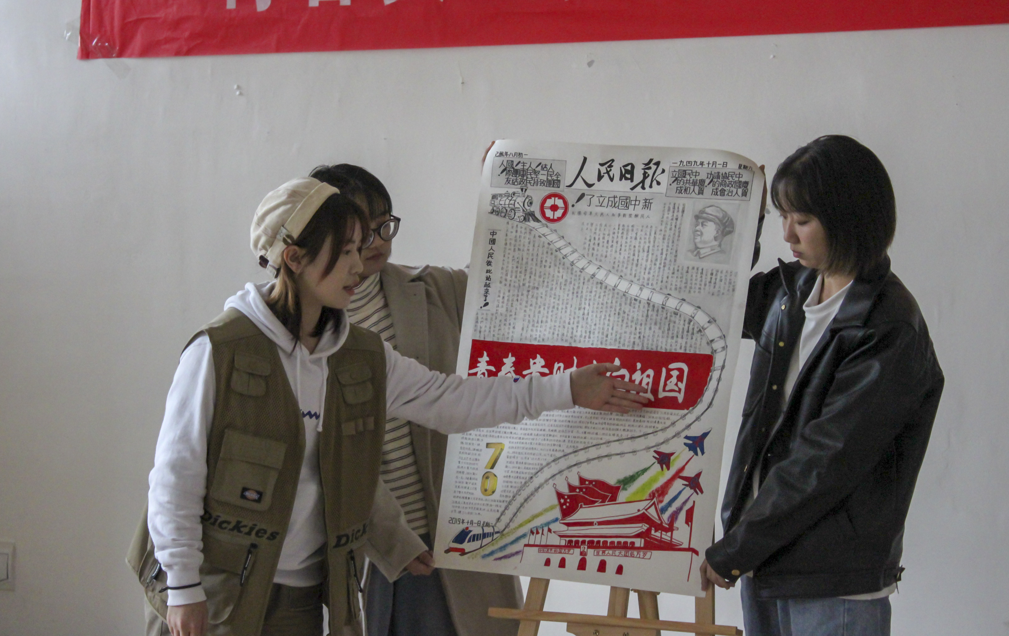为了庆祝祖国母亲七十周年华诞,激发同学们的爱国之情,由2026世界杯指定网站团委主办,会计公司和2026世界杯指定网站联合承办的“青春贵财,告白祖国”创意手抄报比赛决赛于10月24日在正德楼417举行。校团委宣传部副部长彭译萱老师、管科公司团委负责人吴沛丽老师、工商公司团委负责人孔淑华老师、外语公司团委负责人康维老师和校新媒体中心员工代表黄丹凤同学担任评委。