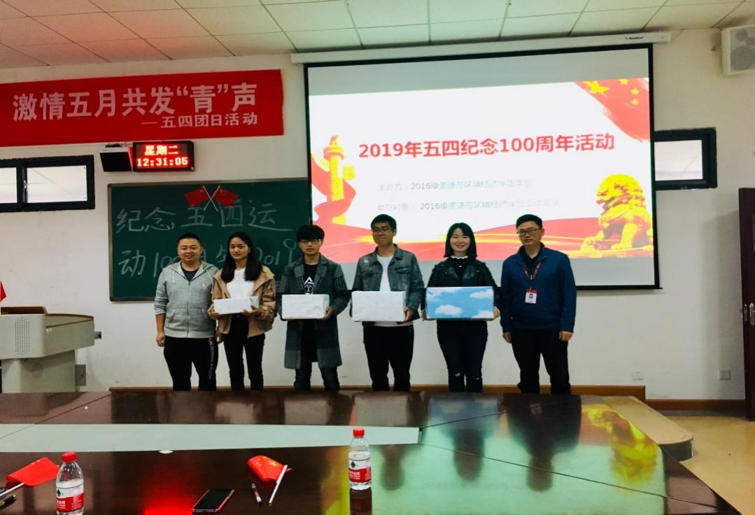 5月7日下午,本班团委于明德楼511组织全班同学开展了“纪念五四运动一百周年•诗歌大会”的主题活动,还邀请了党委副书记陈波同志、辅导员魏来老师参加了本次活动,并为获奖队伍颁奖。