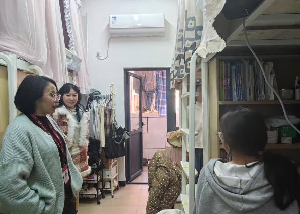 在宿舍,公司领导与同学们亲切交流,叮嘱同学们尽快调整状态,为新学期做好充分准备,提醒大家要遵守校规校纪,提高安全防范意识,注意用水用电安全。保持宿舍环境整洁有序。并呼吁大家在新学期展现全新面貌,合理规划时间,专注专业学习,积极参加实践活动,全面提升自身综合素质。3月4日开学后,公司持续深入寝室进行走访,对宿舍内各项安全隐患进行了细致排查,针对大家提出的问题进行记录,并一一解答。