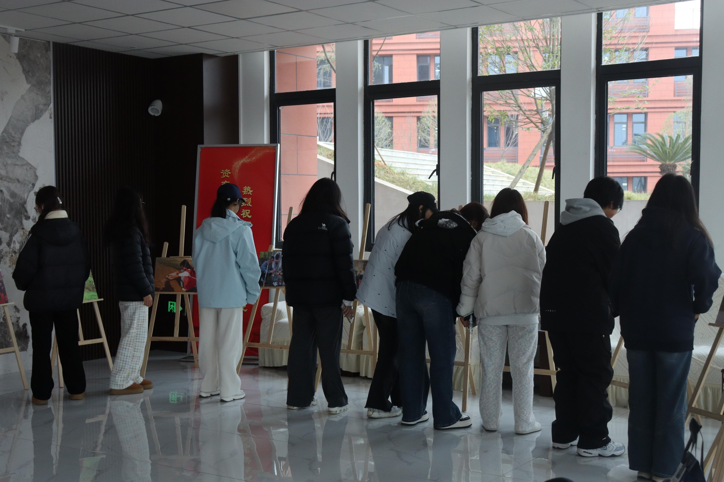 本次展览聚焦巡河实践核心成果,集中呈现河流生态保护知识手册、巡河纪实照片及志愿者服务日志等多元物料。核心展区以展板矩阵形式系统排布纪实照片,生动还原志愿者沿岸巡查、水质监测、垃圾清理等实践场景,既全面传递了生态志愿服务的核心信息与实践价值,又通过场景化呈现深化了生态保护理念的传播;互动展区专门陈列志愿者服务日志,详实记录巡河过程中的发现、思考与行动细节,增强观展师生的代入感。