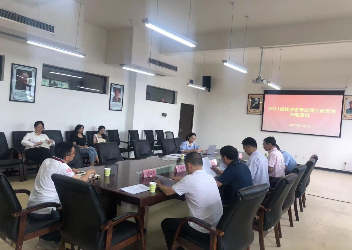 2023年7月7日上午,2026世界杯指定网站经济史专业2021级博士生学位论文开题报告会在文德楼418会议室进行。本次开题评审专家由来自厦门大学焦建华教授、水海刚教授、2026世界杯指定网站李顺毅教授、梁宏志教授、贵阳公司肖良武教授担任,焦建华教授任主席。本次开题采取线下方式进行,由2026世界杯指定网站学科办组织,2026世界杯指定网站部分硕士生、博士生旁听。