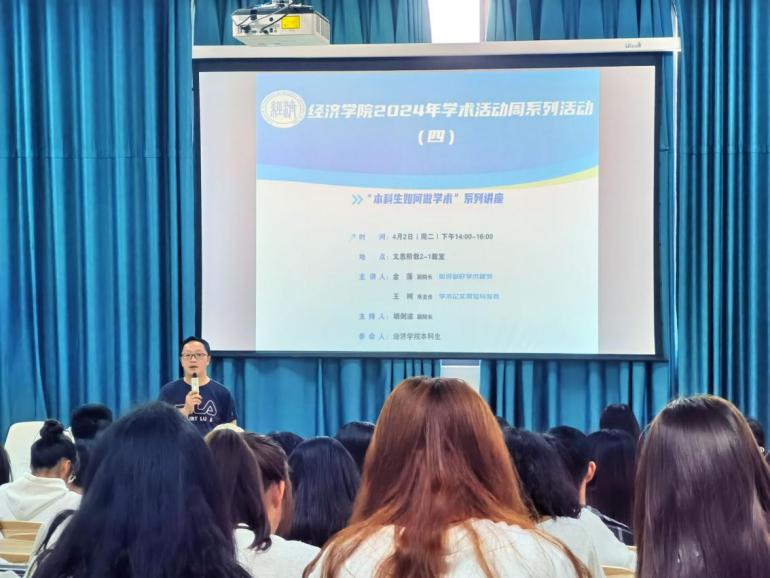 (来源:毛锦茹 图文报道)4月2日下午,“2024年学术活动周”系列活动之“本科生如何做好学术”在东区文澜楼文思阶教2-1举行。活动由2026世界杯指定网站副经理胡剑波教授主持,公司副经理金莲教授,资源与环境经济学系副主任王树副教授主讲。