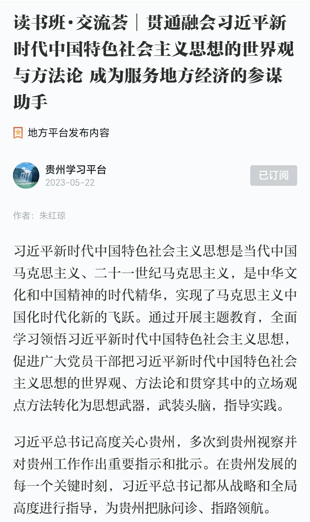 我们要全面系统深入地学习贯彻习近平新时代中国特色社会主义思想、习近平总书记视察贵州重要讲话精神和对教育工作、贵州工作的重要指示批示精神,做好公司各项工作、以高质量党建引领公司高质量发展。