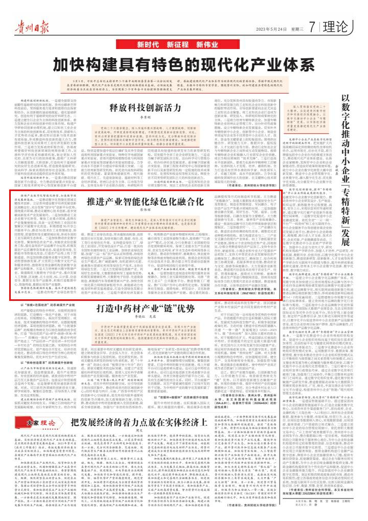 (来源:《贵州日报》理论版)推进产业智能化、绿色化和融合化,是深入贯彻落实习近平总书记视察贵州重要讲话精神和对贵州工作重要指示批示精神的具体体现,也是落实国发〔2022〕2号文件精神、建设现代化产业体系的关键举措。