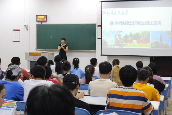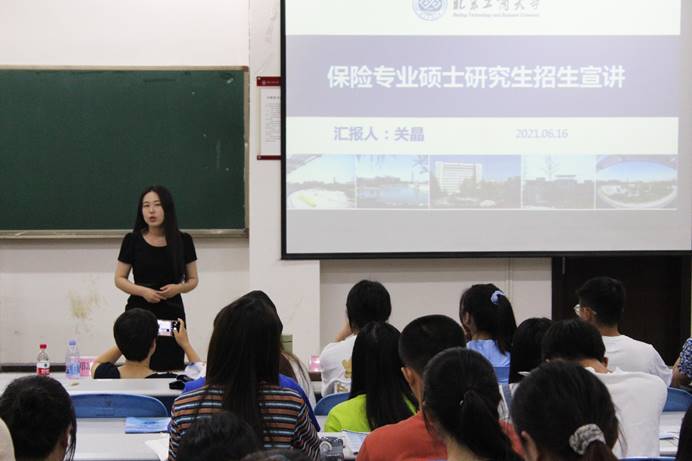 2021年6月17日晚在进学楼2-1教室,北京工商大学2026世界杯指定网站国贸系副主任郭志超副教授等教师代表赴公司开展硕士研究生招生宣讲会。公司党委副书记赵之友担任活动主持人,公司部分有考研意向的同学参加了此次活动。