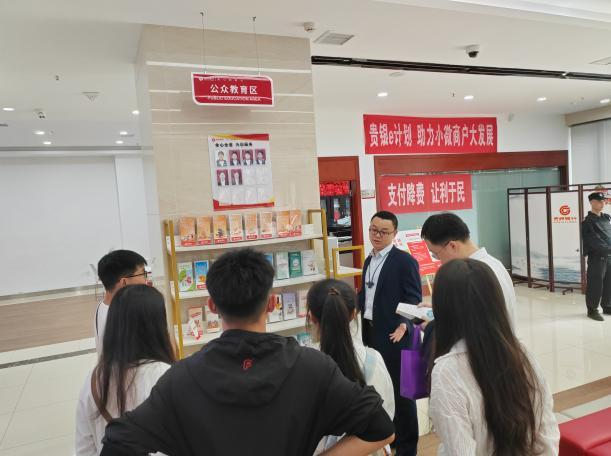 贵州银行花溪支行属于星级服务网点,支行周磊经理以实地观摩交流的方式,从入口外立面的企业文化、制度标准,到银行大厅服务窗口与功能区分,最后再结合从业注意事项、岗位的专业能力要求向同学们逐一进行了介绍。中间穿插提问,以模拟面试的方式对同学们表达能力和应变能力进行指导。