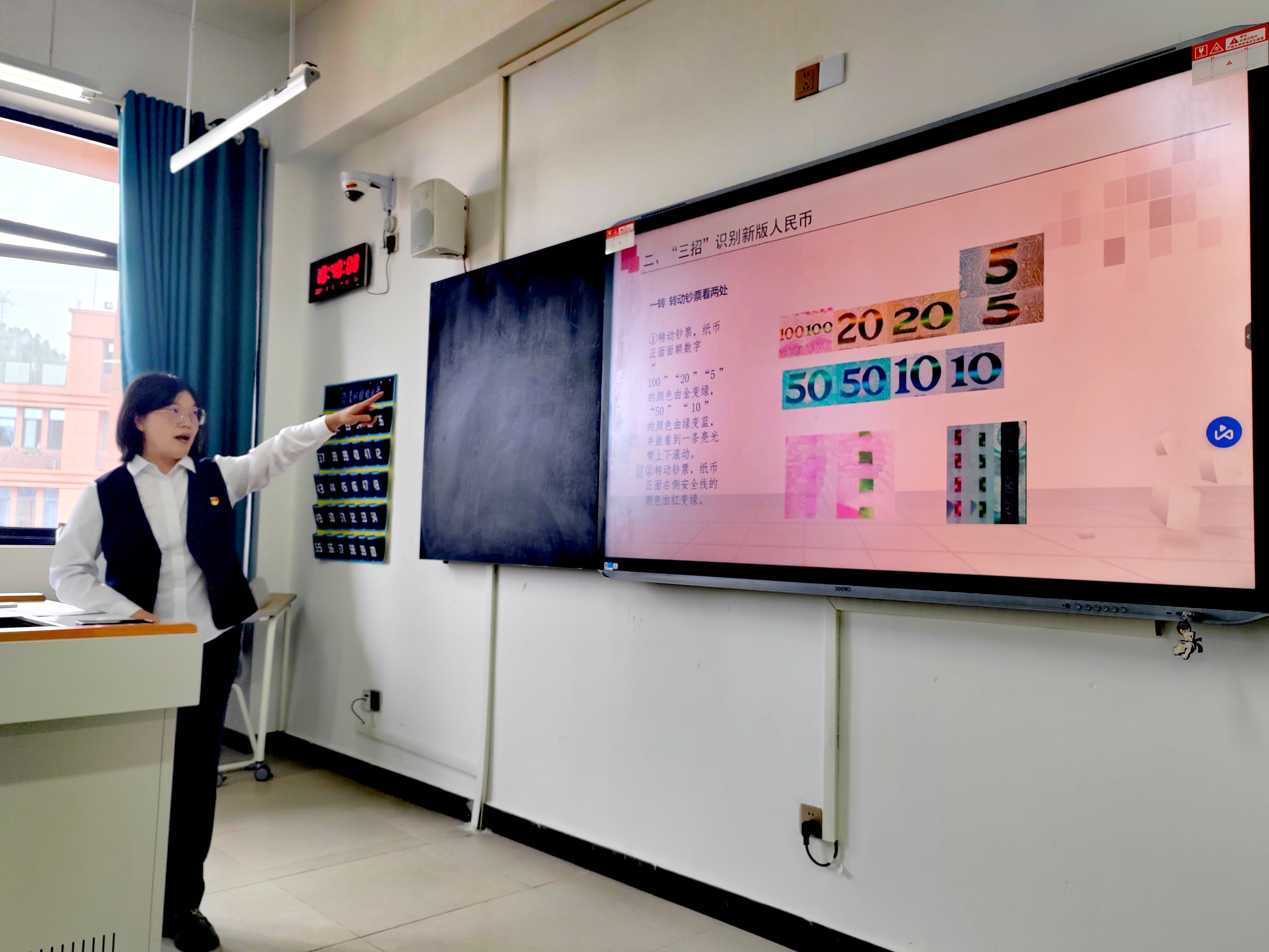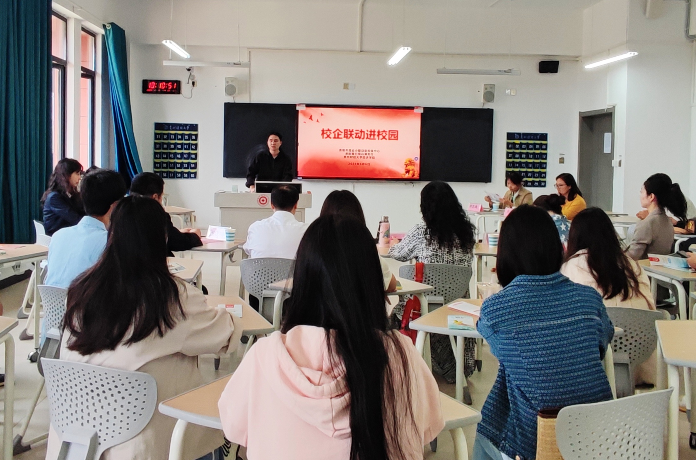 贵阳银行观山湖支行王小玲围绕征信知识、防范电信诈骗、反假币宣传等金融知识进行宣讲,举例提醒同学们及时还贷的重要性以及不良影响。