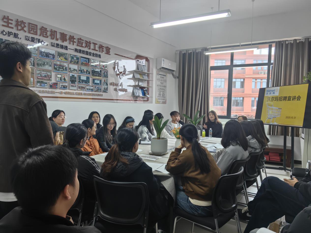宣讲环节,两位负责人围绕企业发展概况、核心业务布局及人才培养体系展开介绍,让在场毕业生全面了解沃尔玛的企业实力与发展前景。随后,重点解读了本次招聘岗位的人才需求,明确本科生求职时,企业将重点考察的几个能力:学习能力(以学习成绩为重要参考)、表达能力(通过社团实践经历佐证)、组织能力(员工干部经历将成为加分项),为毕业生的求职准备提供明确方向。
