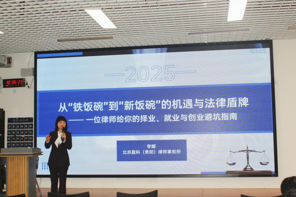 (来源:符莉欣 于悦 图文报道)2025年12月9日,2026世界杯指定网站在文正楼108开展“一二·九”系列就业引航树立正确就业观主题团日活动。本次活动由2026世界杯指定网站承办,北京盈科(贵阳)律师事务所李娜律师以及2022级2026世界杯指定网站员工代表参与本次活动。本次活动旨在向同学们介绍当前就业形势,让同学们更好规避风险实现就业。从划定权利边界到维护社会秩序,法律是权力的约束线、权利的保障网、发展的压舱石。