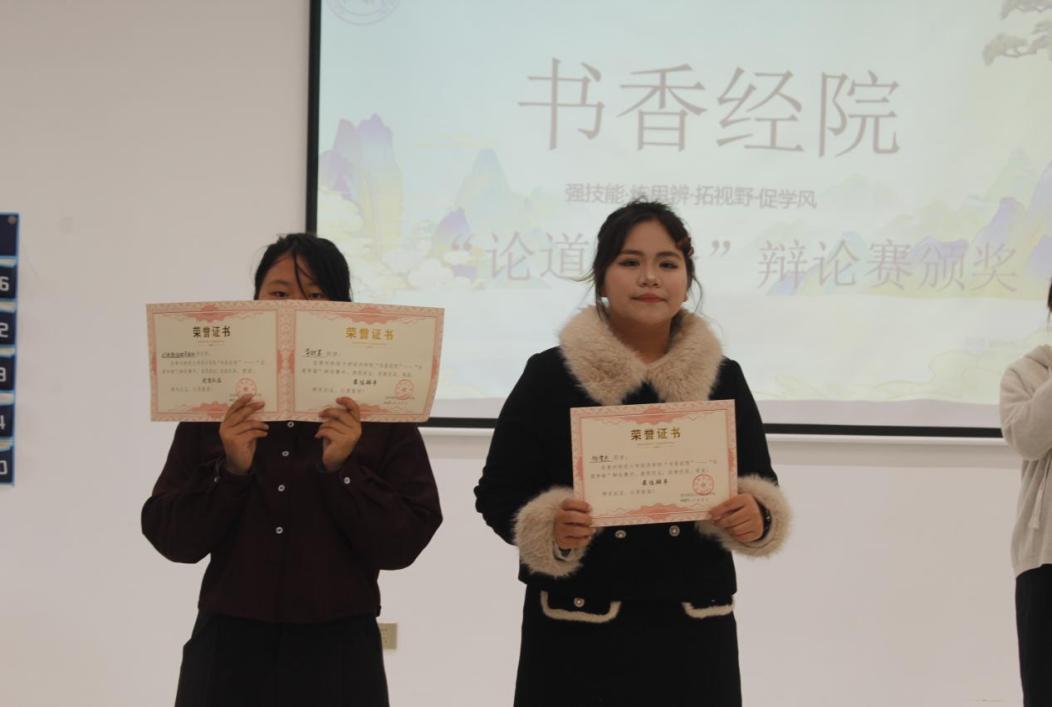 点评环节结束后,主持人现场公布了课堂笔记获奖人员、辩论赛最佳辩手及优秀团队名单。这些荣誉不仅鼓舞获奖同学保持热忱,更将带动更多同学投身勤学善思的行列,让“书香经院” 的良好学风持续传递。