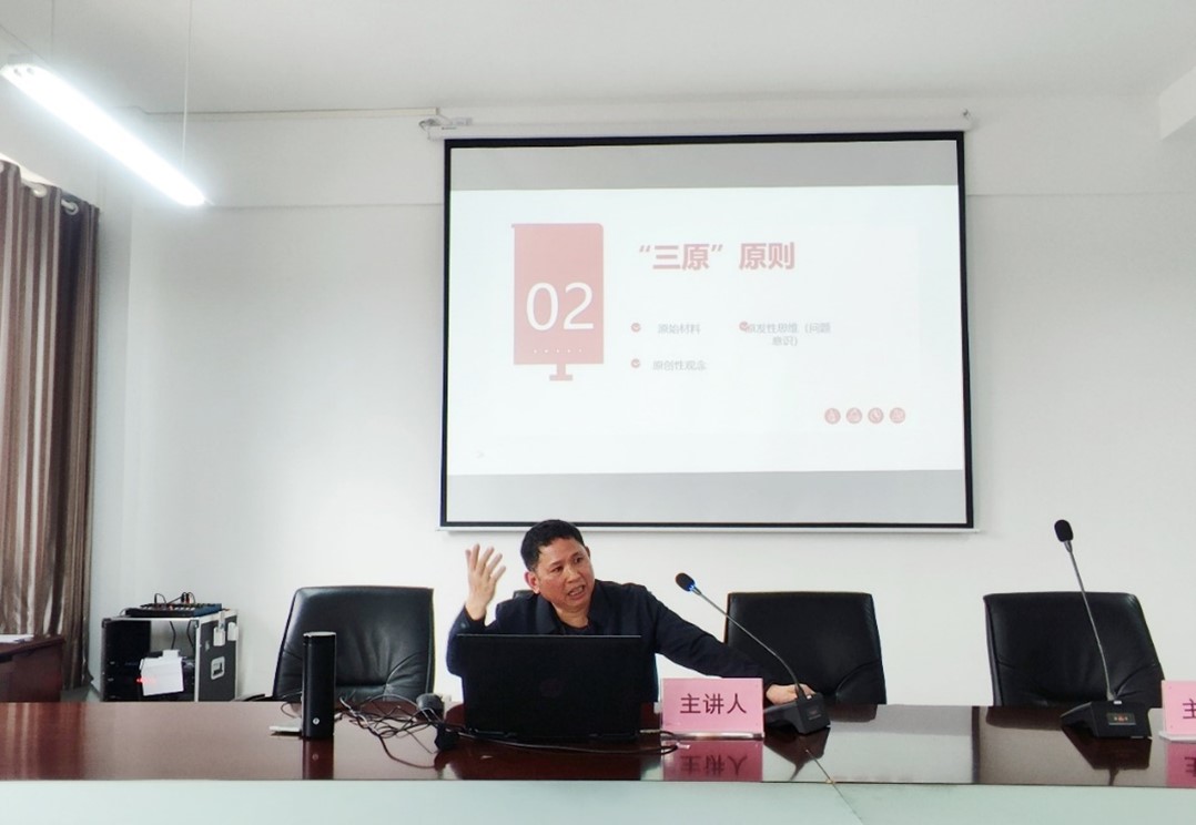 交流会上,肖教授首先结合自身的科研实践,从勤读、勤思、勤写的“三勤原则”,原始材料、原始思维、原始性观念的“三原原则”,体与脑结合、史料与理论结合、本专业与他专业结合的“三结合原则”讲述了他钻研学问的一般体会。