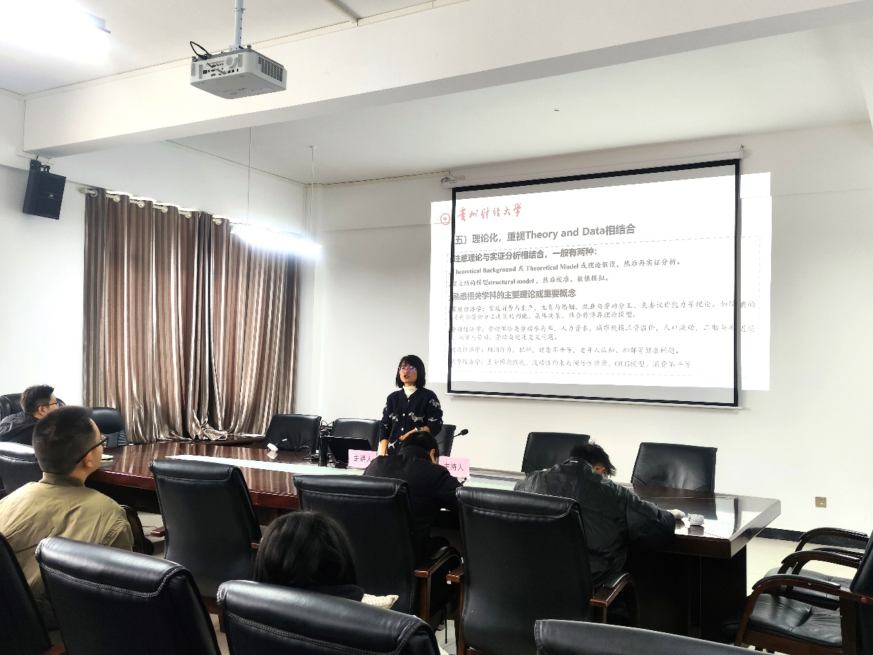在交流会议中,吴秀琴老师从经济学研究过程、论文各部分写作技巧、论文期刊特点及投稿技巧三方面来阐述学术论文的写作以及后续论文投稿问题。